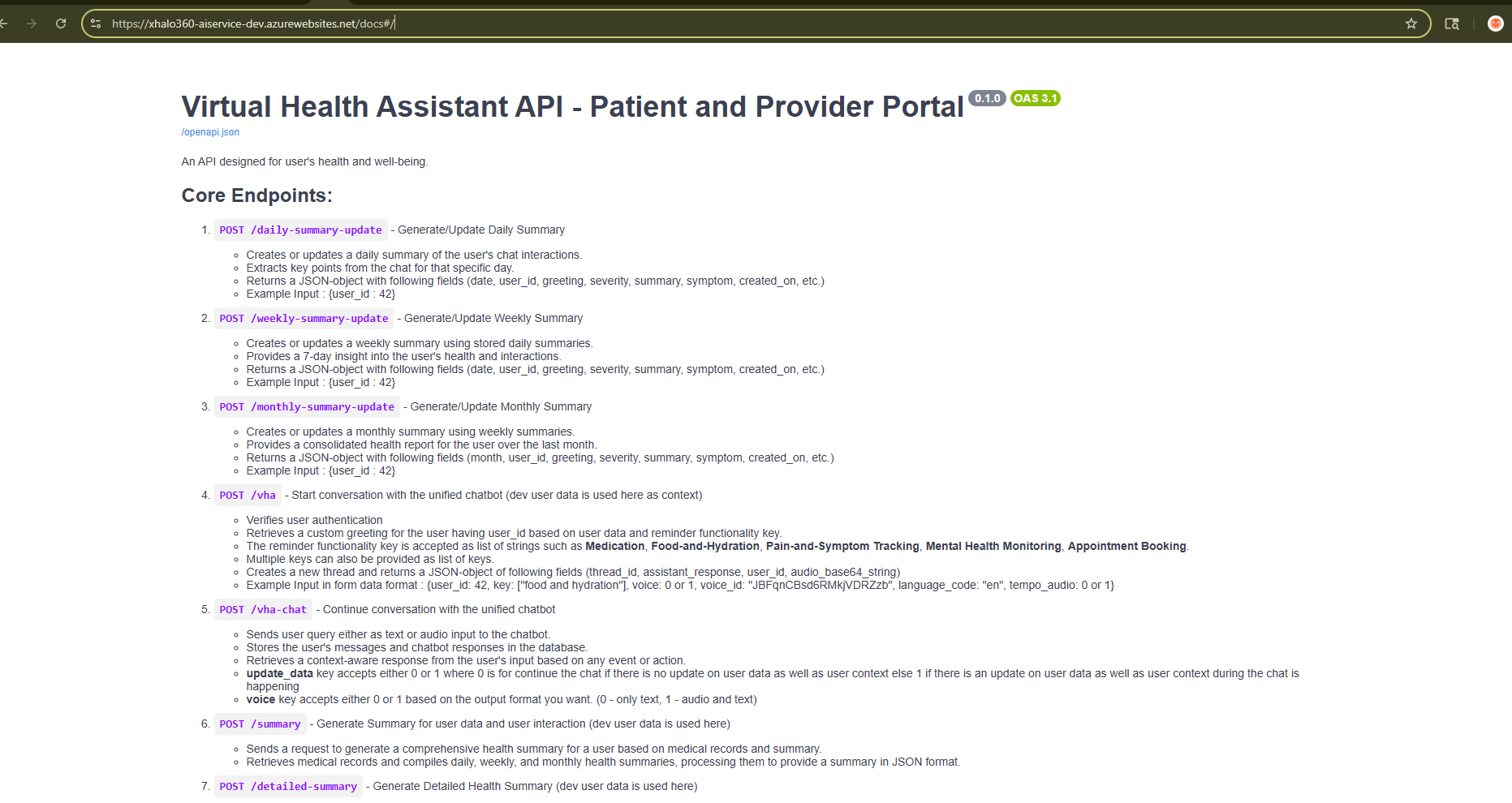 Designed the AI architecture, including the development of comprehensive backend APIs for patient and provider portals. I implemented the RAG (Retrieval-Augmented Generation) logic that feeds clinical summaries into Azure OpenAI assistants(vha ChatBOT) to ensure medical accuracy.